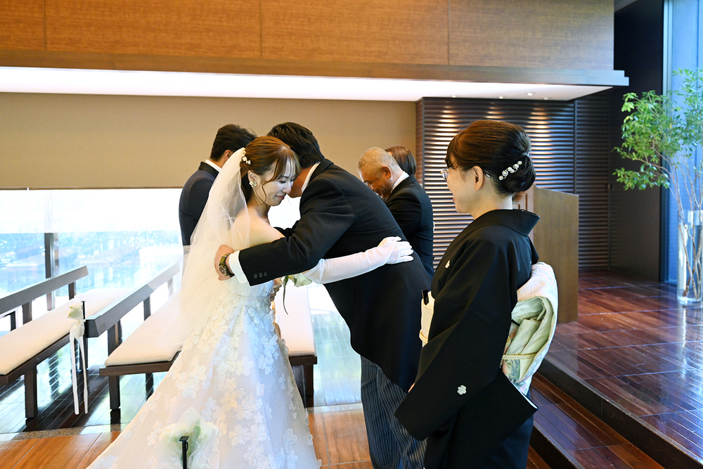 いつもと変わらない笑顔で、りほさんを待つろくろうさん。その笑顔は、緊張の面持ちもありつつ、楽しみにされていらっしゃるようにも見えました。振り返った瞬間の笑顔いっぱいのお互いの姿には、心が温かくなりました。